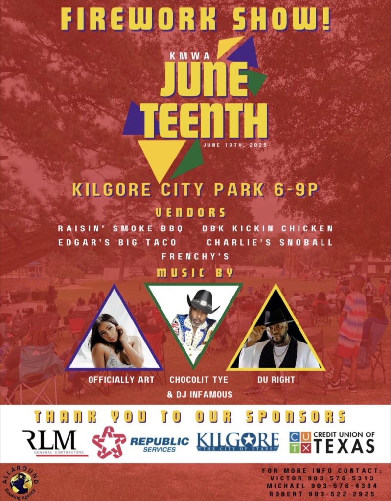 There will be fireworks over Kilgore Thursday night – an echo of the celebrations that followed June 19, 1865, the day slaves in Texas finally learned they had been freed.